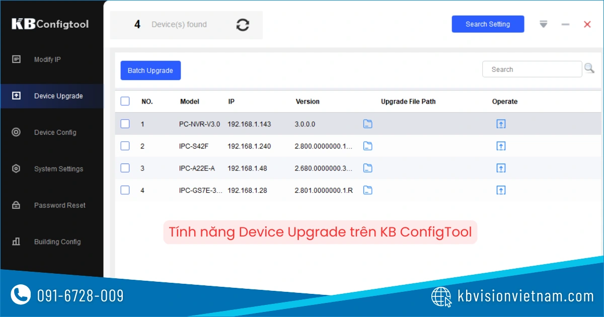 - Cập nhật firmware: Phần mềm hỗ trợ cập nhật firmware cho các thiết bị KBVision, giúp cải thiện hiệu suất và bảo mật.