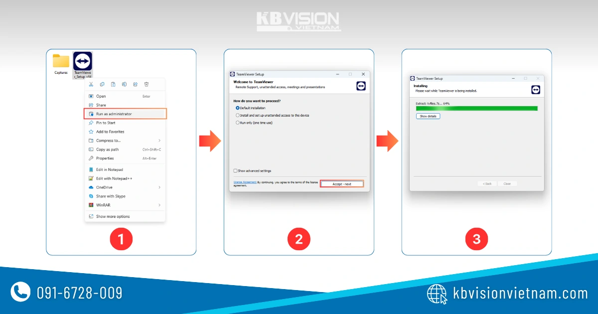 Bước 1 – Sau khi tải thành công file cài đặt TeamViewer theo liên kết chia sẻ ở trên. Các bạn tìm đến thư mục chứa file cài đặt rồi nhấn chuột phải chọn Run as administrator.